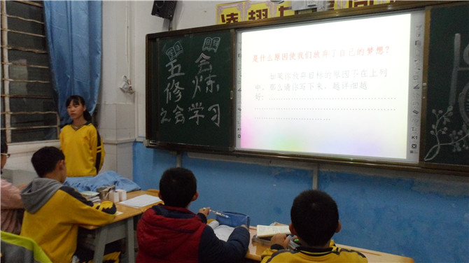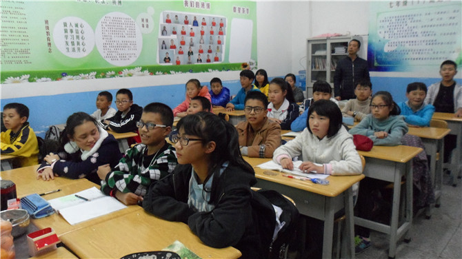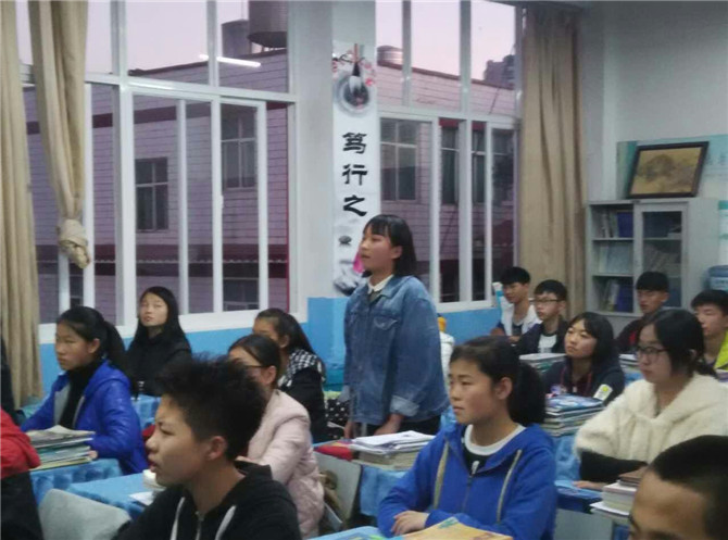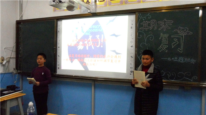 在七(2)班的教室里,每一個(gè)學(xué)生都安安靜靜地注視著講臺(tái),因班主任馬愛明帶學(xué)生去看病了,由兩位男生負(fù)責(zé)主持本次活動(dòng)。只見屏幕上展示了“聯(lián)考和期末考試即將來到,你是否做好了復(fù)習(xí)準(zhǔn)備?”,“你將如何調(diào)節(jié)在復(fù)習(xí)中的壓力?”等問題。臺(tái)上的兩位主持人和同學(xué)們進(jìn)行了互動(dòng),同學(xué)們展開了討論,他們各抒己見,發(fā)表了自己的看法,場面異常熱烈。