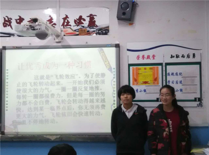 八年級(jí)兩個(gè)班即將面臨小三科(地理、生物、信息技術(shù))中考,兩位班主任針對(duì)班上有的同學(xué)心中沒有目標(biāo),缺乏上進(jìn)心的現(xiàn)象,分別以“是什么原因讓你放棄夢(mèng)想”、“勤奮+汗水=成功”為話題讓同學(xué)們展開討論,并讓同學(xué)們觀看了由弱變強(qiáng),由失敗走向成功的勵(lì)志故事。兩個(gè)班的學(xué)生從中明白了許多道理,提高了自信心。