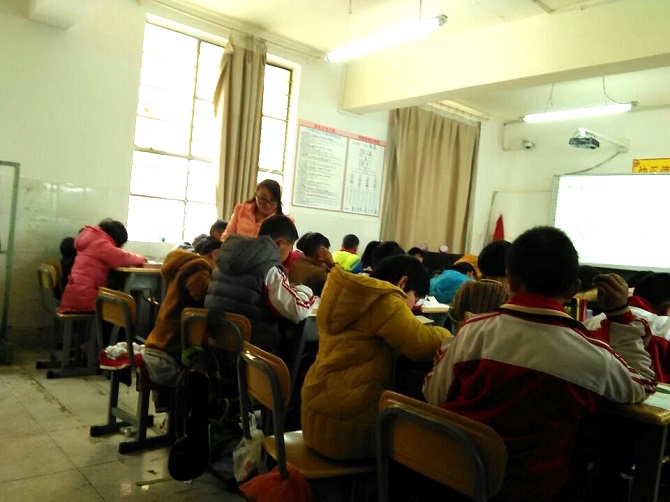 2017年3月21日,云南呈貢區育才學校小學數學組為迎接云南育才教育集團青年教師“四步教學法”課堂教學技能大決賽,全組教師聚在一起聽課、評課、探討教案、教法,眾人齊心協力幫助組內進入決賽的吳秀英老師打磨課堂。