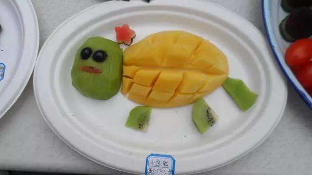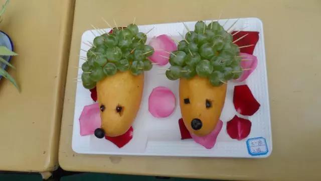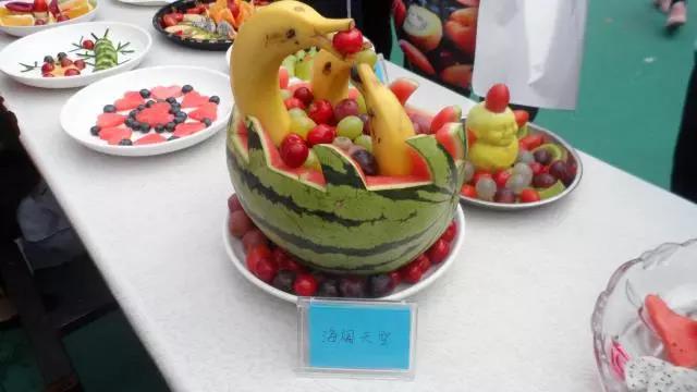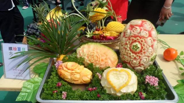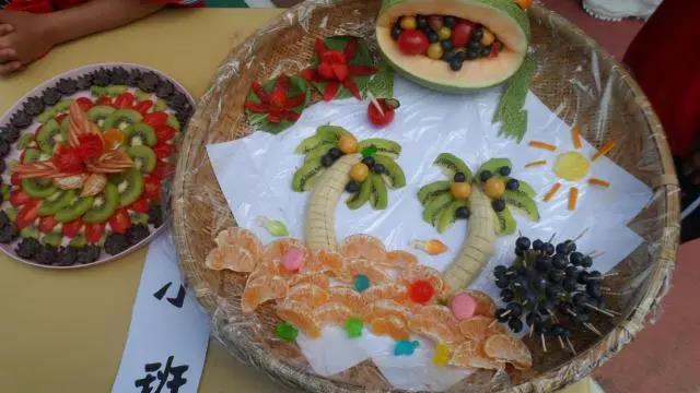 最后每個班經過挑選,把最得意之作,當成一幅幅成品拿到操場上擺放的長桌子上展示開來,兩百來件水果藝術品,頓時驚艷四座,讓人目瞪口呆,這些作品色彩艷麗、精美絕倫。作品的冠名也是別出心裁,加上每個班解說員發揮豐富的想象力,口若懸河地介紹了作品設計意圖和象征的寓意,引來了眾多師生家長的圍觀,大家無不嘖嘖贊嘆,大聲呼叫“哇塞!超級的美!”。