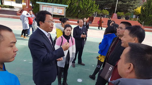 2017年11月13日,呈貢區育才學校接待了云南師范大學大哲學院楊院長帶隊的國培教師研修班到學校開展學習研修活動。該班學員來自云南省18個縣市,一行70人,另外參與活動的還有云南師范大學在校大學生53人。呈貢區育才學校是校長、教育管理干部、教師等培訓班的定點參觀學習研修學校,為增強與高等教育院校的聯系,擴大自身的影響力和社會知名度,借力打造名校,學校精心接待了此次活動。