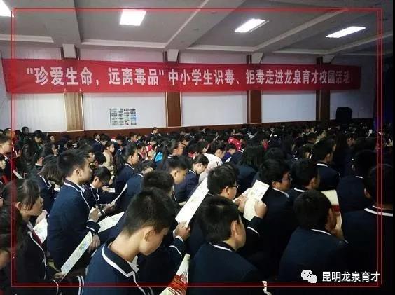 昆明龍泉育才學校盧艷校長在講話中指出,本次活動是我校貫徹2017年國際禁毒日提出“無毒青春,健康生活”系列活動的一件大事,也是“禁毒、防毒、拒毒”工作中的一件大事,更是促進校園安全、家庭幸福、社會和諧的大事。盧艷校長謹代表學校向為禁毒工作默默奉獻的禁毒局公安民警表示由衷的敬意,向關心、支持和參與禁毒活動的陽光公益、昆明教育電視臺表示衷心的感謝!號召同學們行動起來,帶動家庭和周圍的人抵制毒品,遠離毒品,打造無毒青春,建設和諧校園、和諧家園及和諧社會!