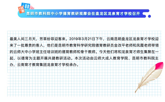 昆明市教科院中小學(xué)德育教研觀摩會(huì)在盤龍區(qū)龍泉育才學(xué)校召開