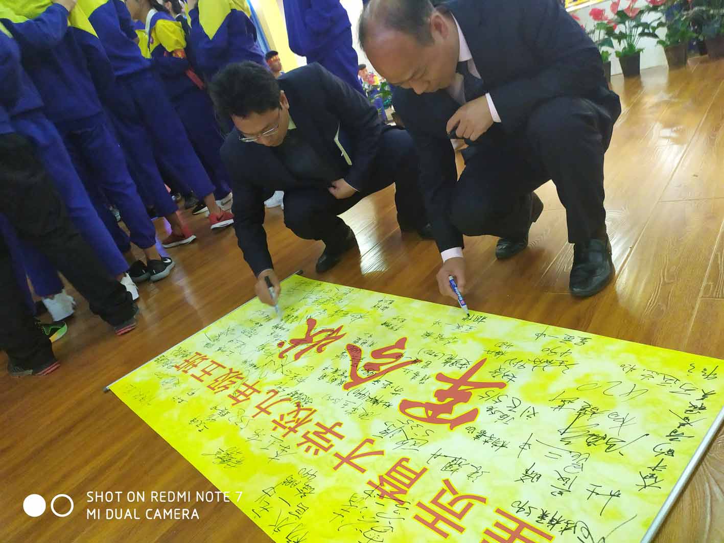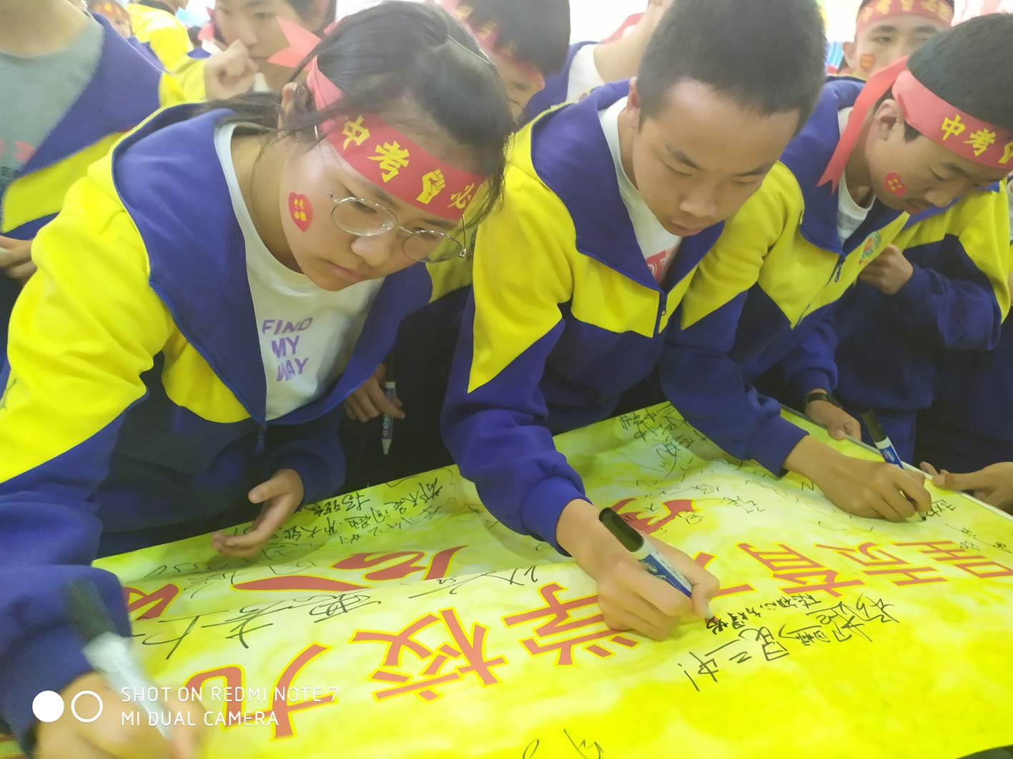 在誓師大會的最后環節,劉校長及九年級教師,組織各班同學在“中考軍令狀”上鄭重地簽下了自己的目標分數和名字。預祝九年級學子夢圓六月,金榜題名。