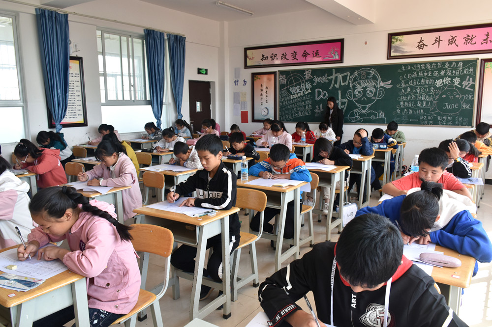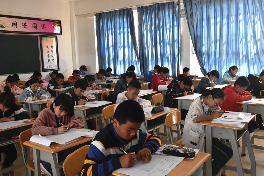 上午十點,孩子們在老師們的引導下,順利的進入考場。為保證考生成績的公平性和真實性,每個考場前后皆有兩名監考教師交叉巡邏。