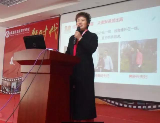 人們都說,一個成功男人的背后都有一個女人,可是對李秋燕老師來說,是:一個成功女人的背后有一個男人。李春寬先生是李秋燕老師的愛人,在生意場上做得風生水起,李秋燕老師本可以坐享其成,可是她為了實現自己的少年夢想,義無反顧地選擇到龍泉育才教書,李先生只好支持她,承擔起管孩子和所有家務事。作為家屬代表發(fā)言的他以風趣幽默的語氣講述了他的無奈和對自己愛人選擇教師職業(yè)的尊重,對學校工作的支持,逗樂的全場,也感動了全場,大家給予他雷鳴般的掌聲。